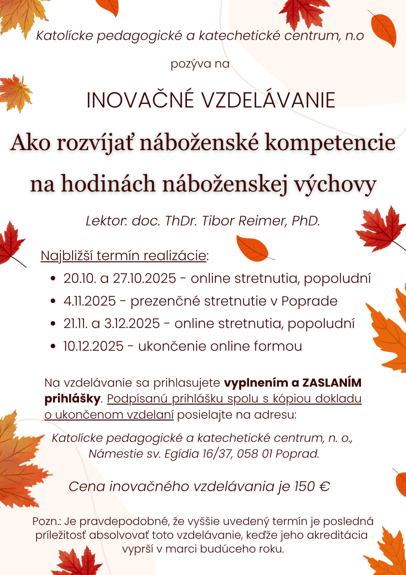 Obsah inovačného vzdelávania nájdete na stránke: https://kpkc.sk/rozvoj-nabozenskych-kompetencii/.