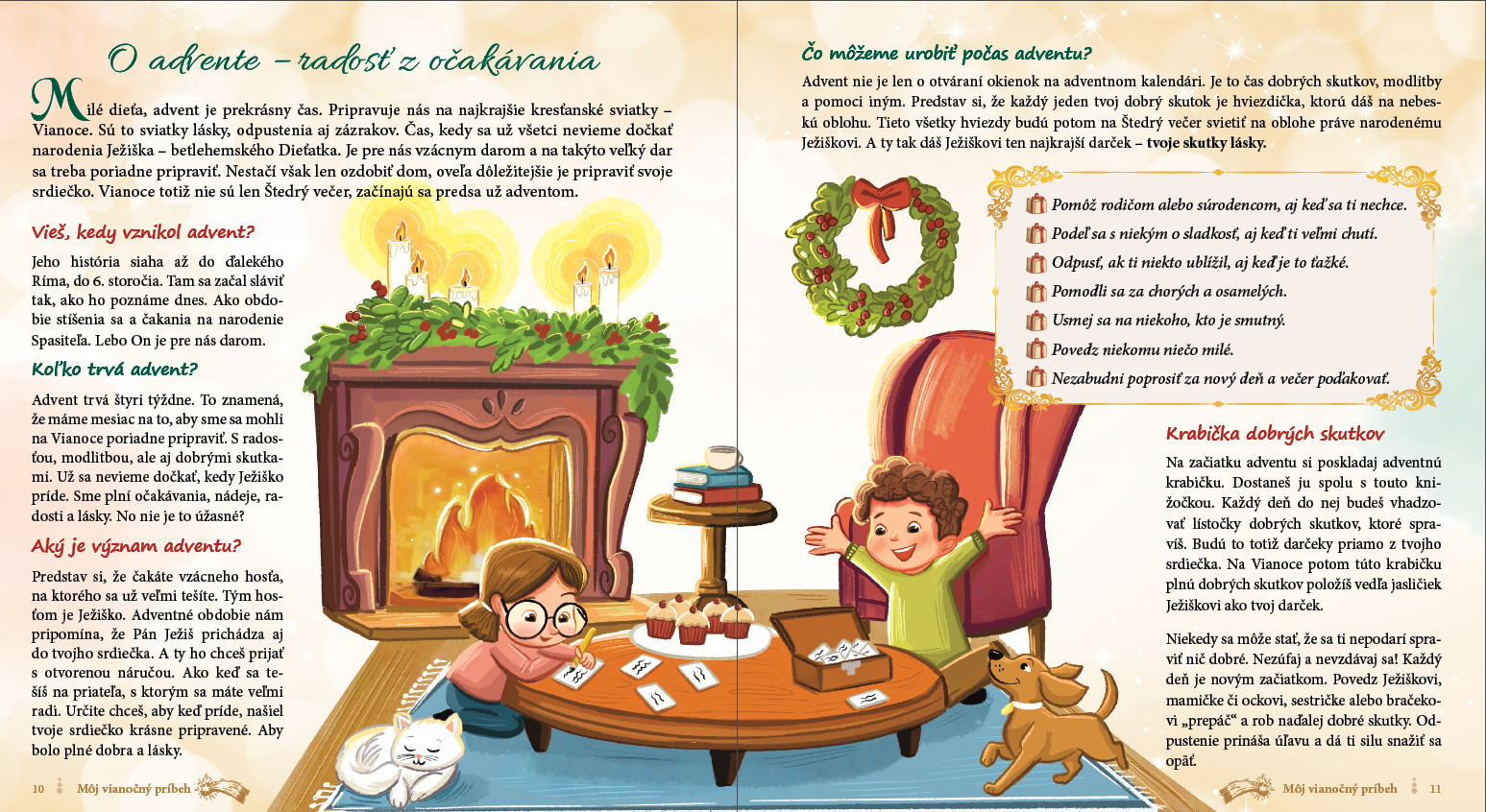 Knižka je popretkávaná pútavými príbehmi, krátkymi vysvetleniami, zaujímavosťami, citátmi z Písma a úprimnými modlitbičkami detského srdiečka, s cieľom privádzať deti k hlbšiemu prežívaniu Vianoc.