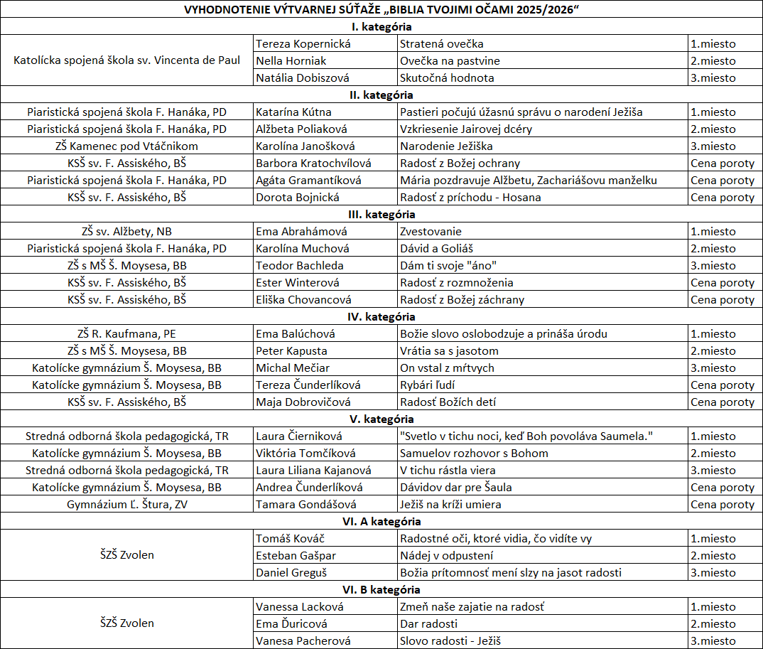 Vyhodnotenie výtvarnej súťaže Biblia Tvojimi očami 2025/2026