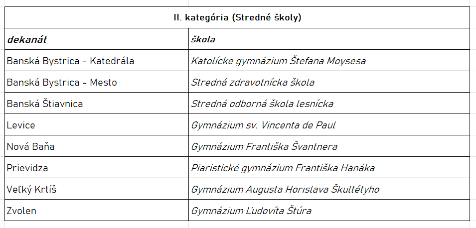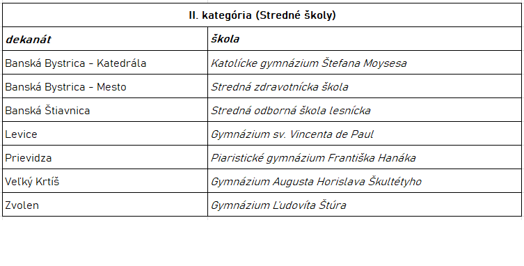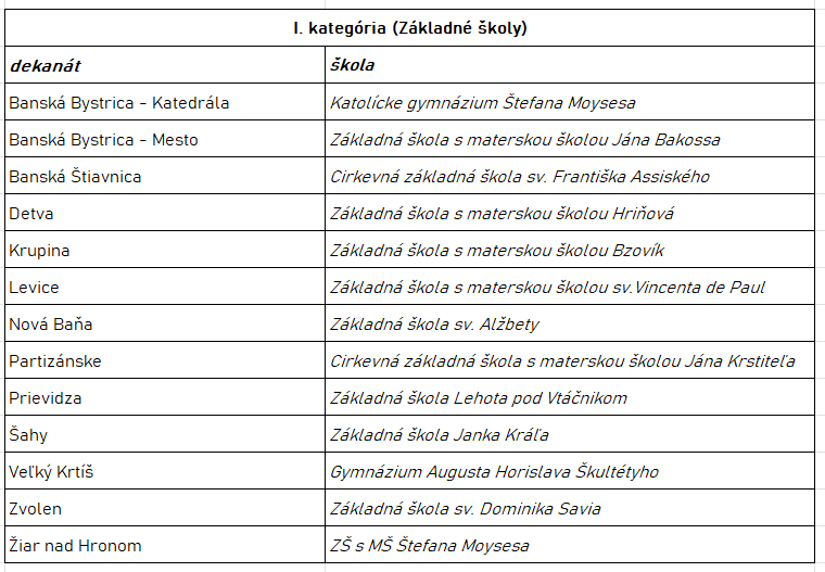 Nižšie nájdete víťazné družstvá v jednotlivých dekanátoch, ktoré postupujú do diecézneho kola v školskom roku 2025/2026.